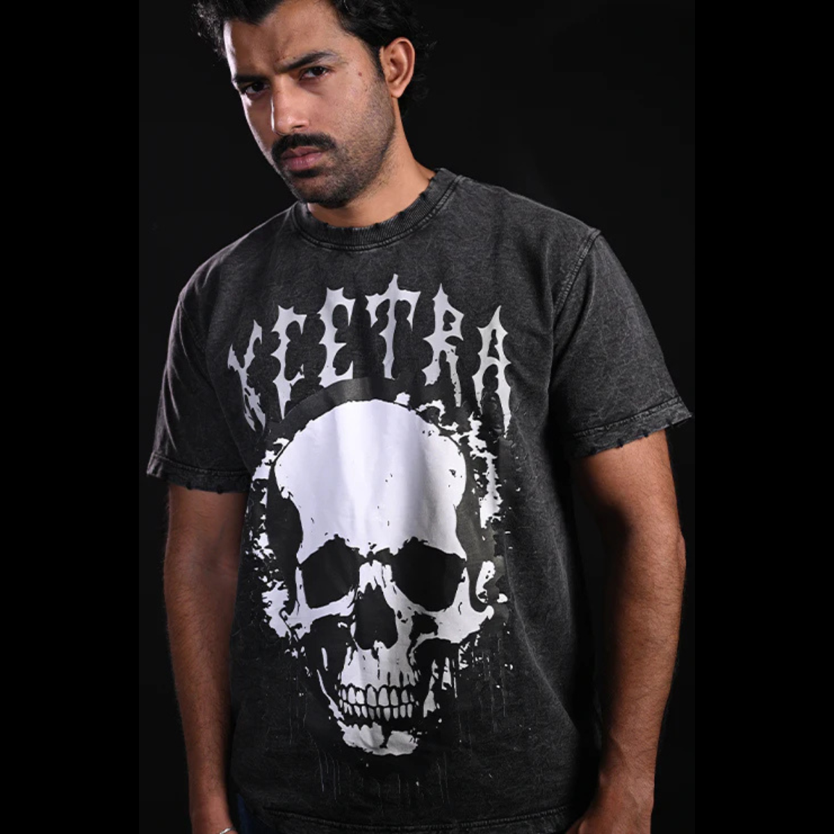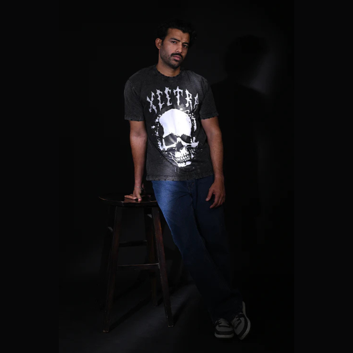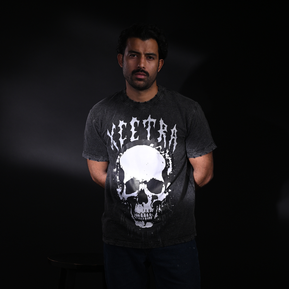 A roughed up over-sized fit to suit a near-gothic vibe. Round neck T-shirt with Xcetra's original artwork. This T-shirt pairs well with everything!