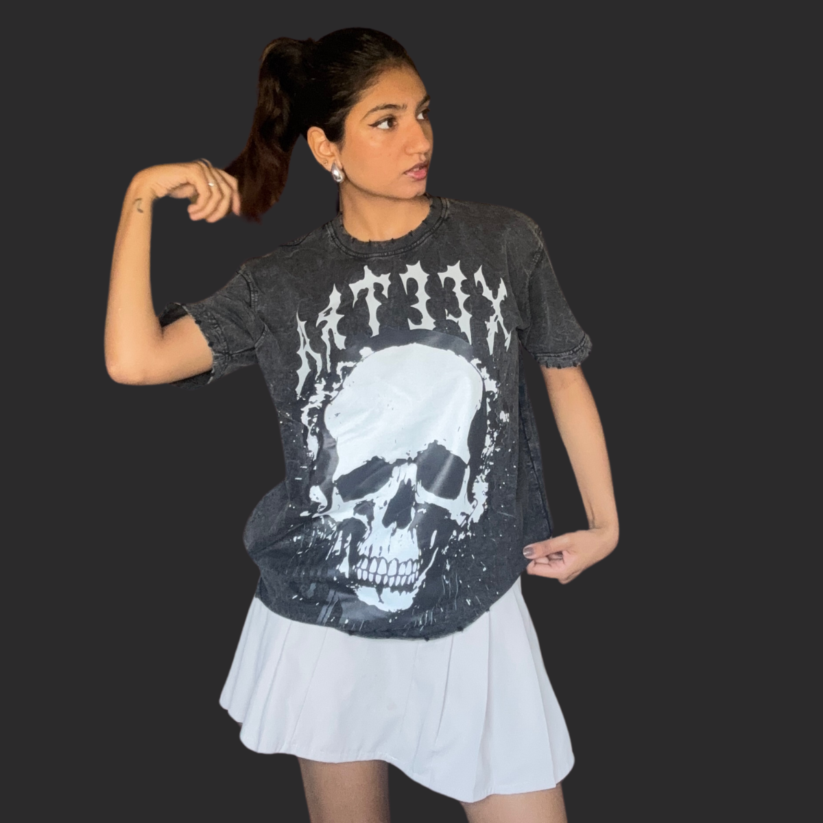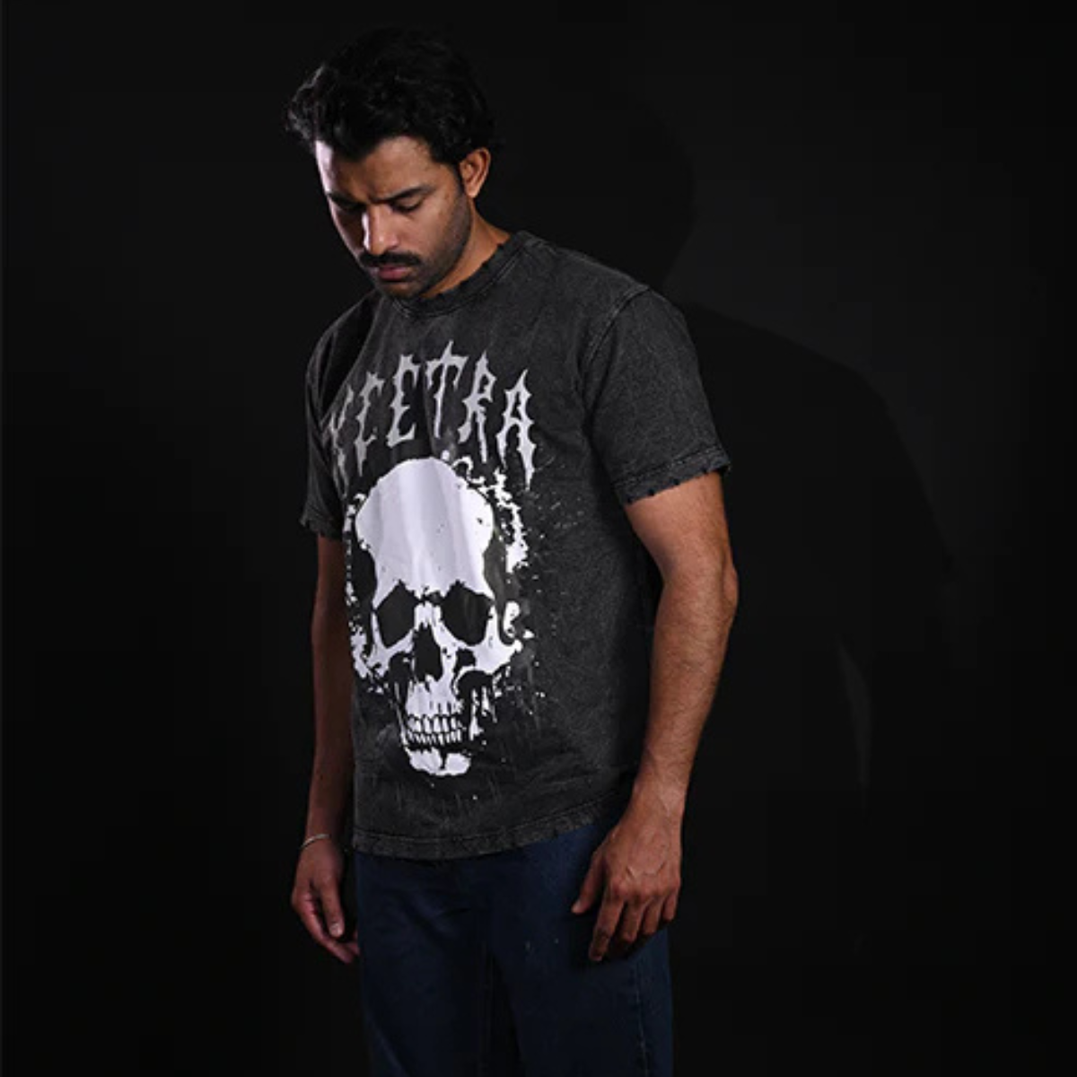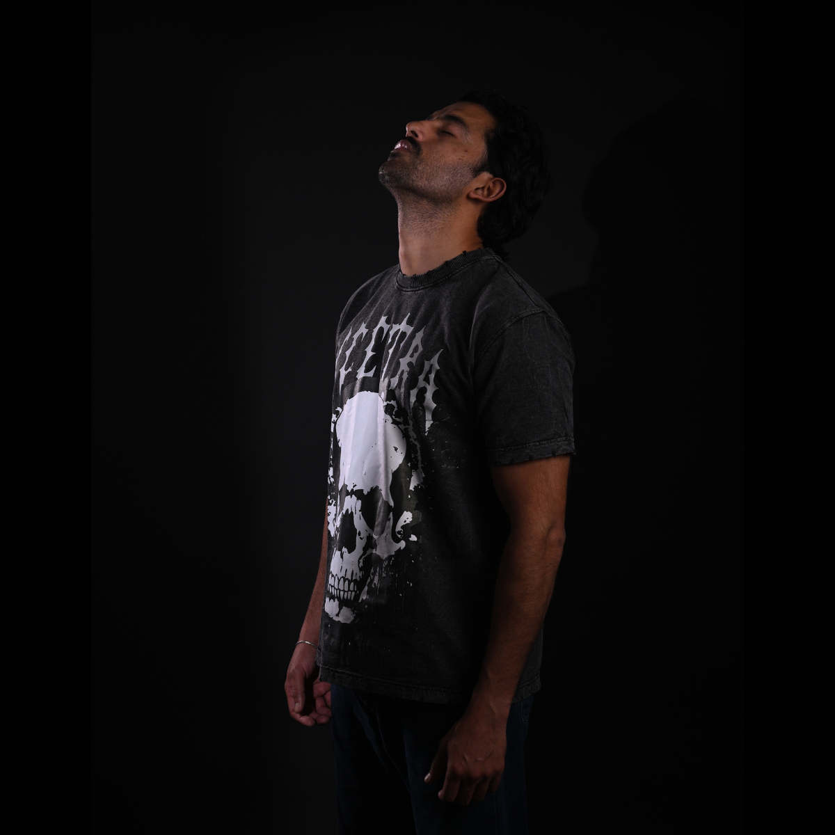 A roughed up over-sized fit to suit a near-gothic vibe. Round neck T-shirt with Xcetra's original artwork. This T-shirt pairs well with everything!